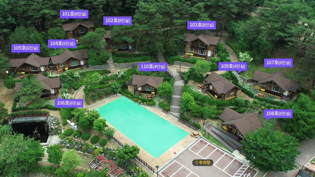 | 비품안내 | TV, 냉난방기, 전자레인지, 전기밥솥, 식기류, 전기포트, 드라이기, 수건 등 |