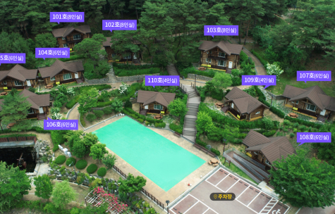 | 비품안내 | TV, 냉난방기, 전자레인지, 전기밥솥, 식기류, 전기포트, 드라이기, 수건 등 |