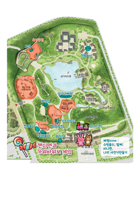 아이들이 좋아할만한 체험들과 전통놀이, 기차놀이 등